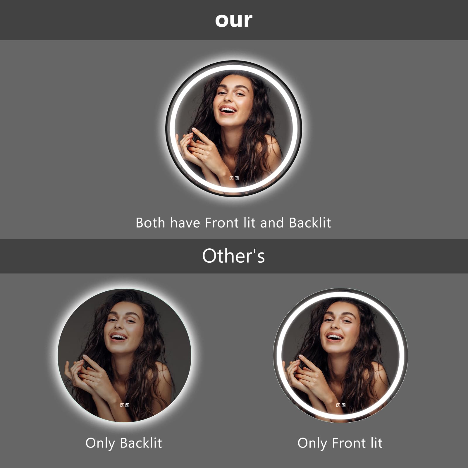 - ¡¾3 Color Frontlit & Backlit¡¿: ROOMTEC's LED bathroom mirror provides brighter and softer frontlit and backlit lighting with adjustable brightness and color temperature.