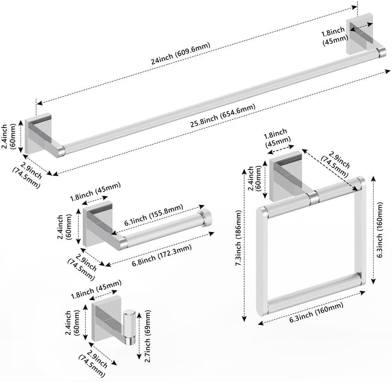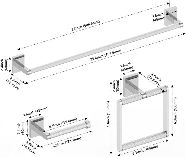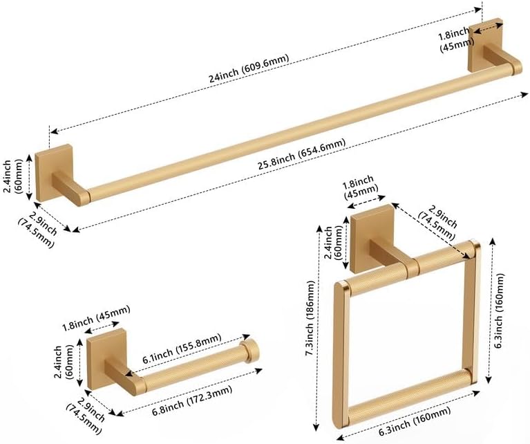 Bathroom Hardware Set 3 Piece Brushed Nickel/Brushed Gold Bathroom Accessories Set Including 24" Hand Towel Bars, Toilet Paper Holders, Towel Rings(3pcs, Brushed Nickel)