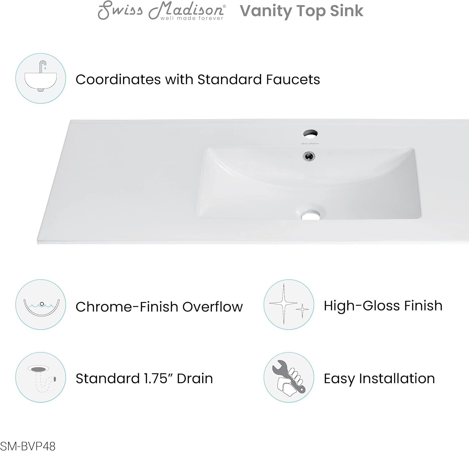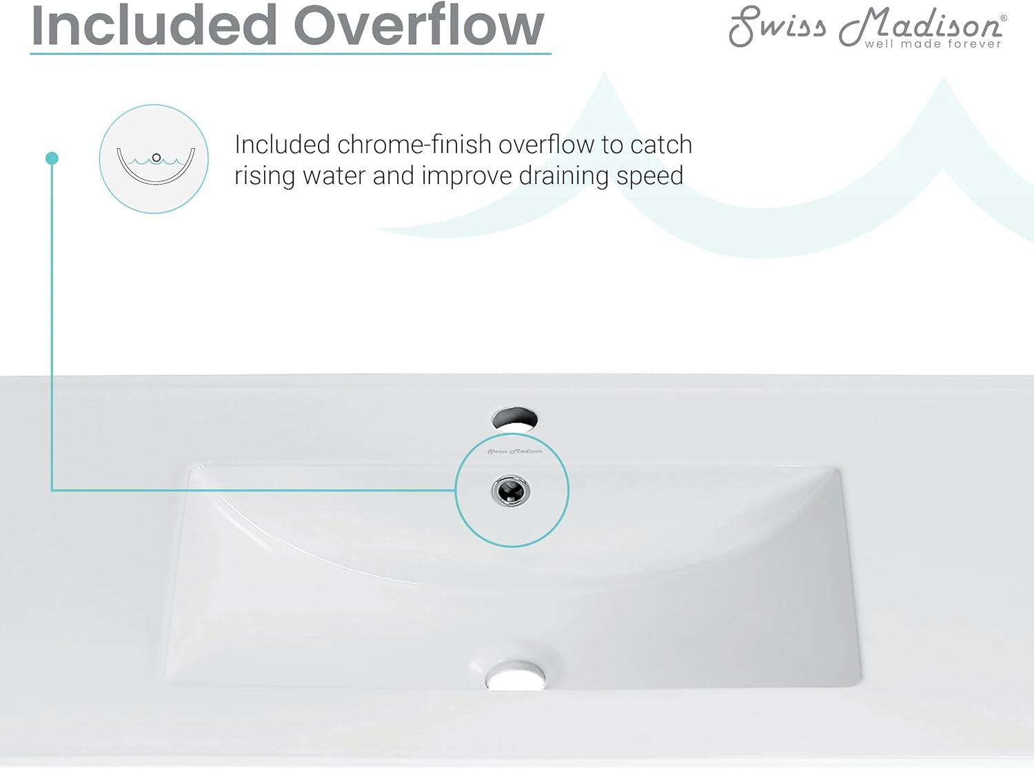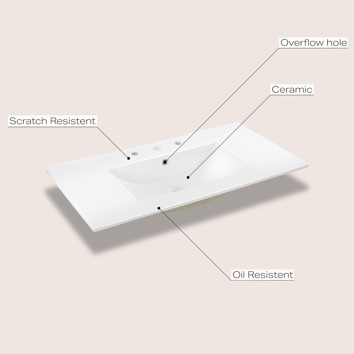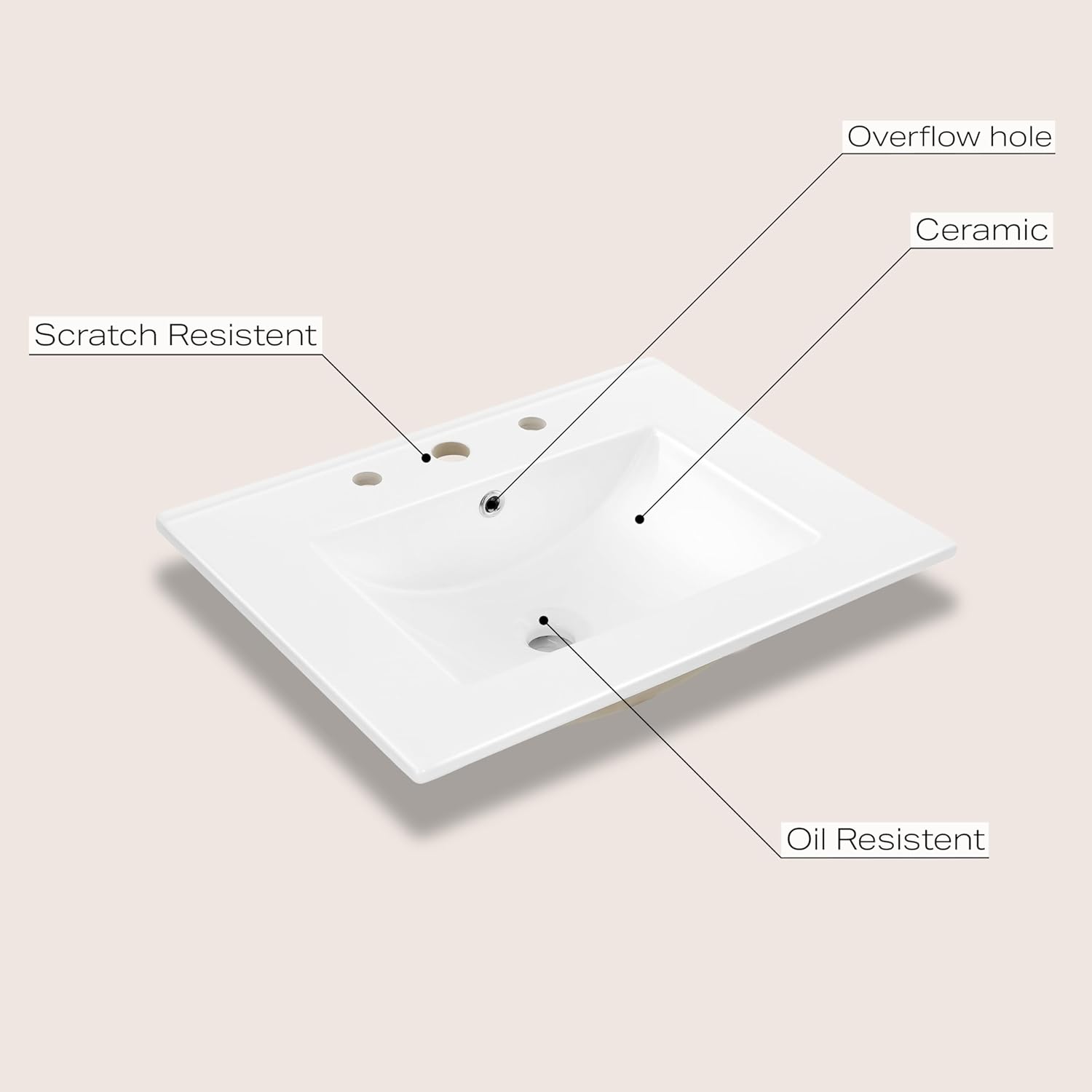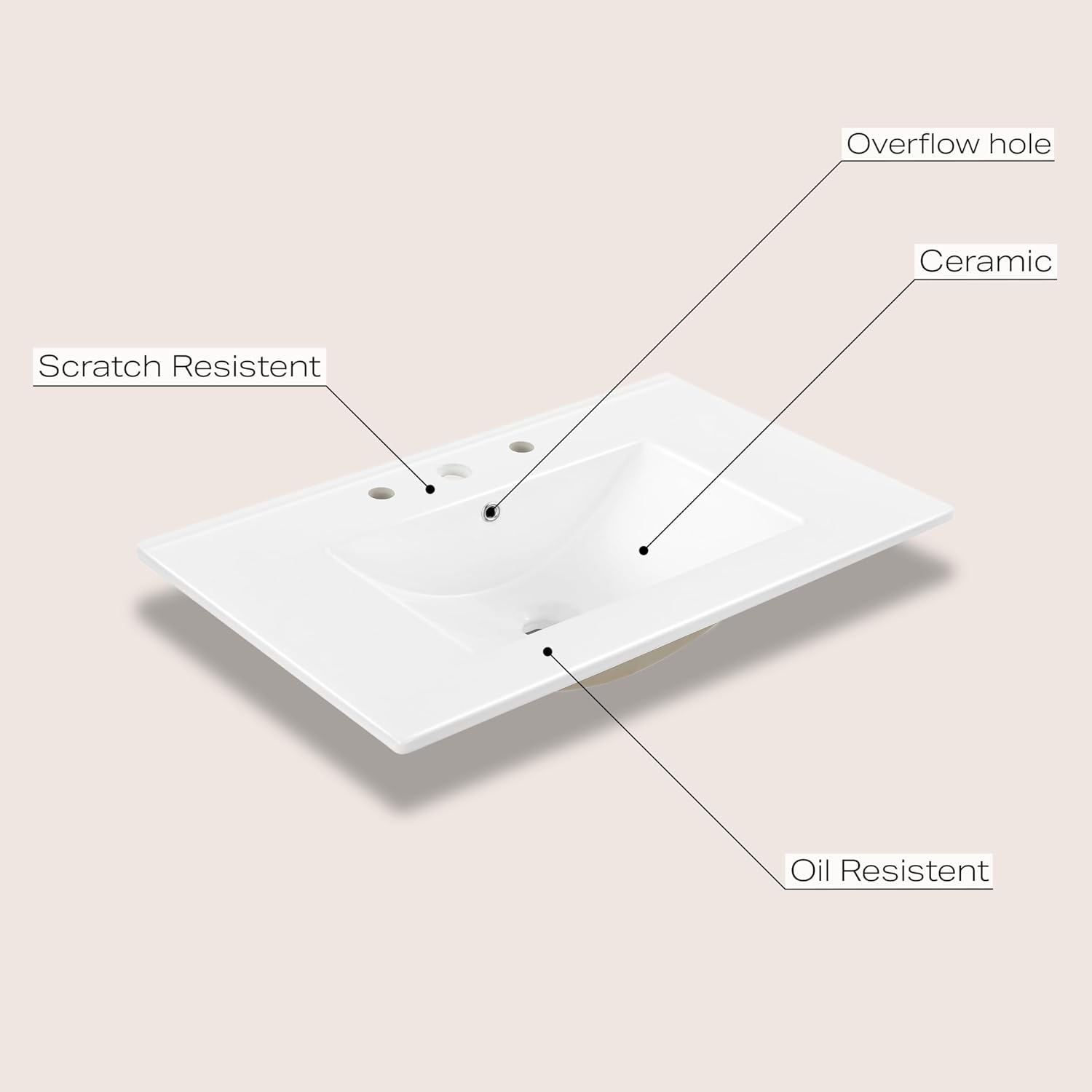 ROOMTEC JONATHAN Y SNK1002A Ancillary 3-Hole 30 in. W x 18.25 in. D Classic Contemporary Rectangular Ceramic Single Sink Basin Vanity Top, White