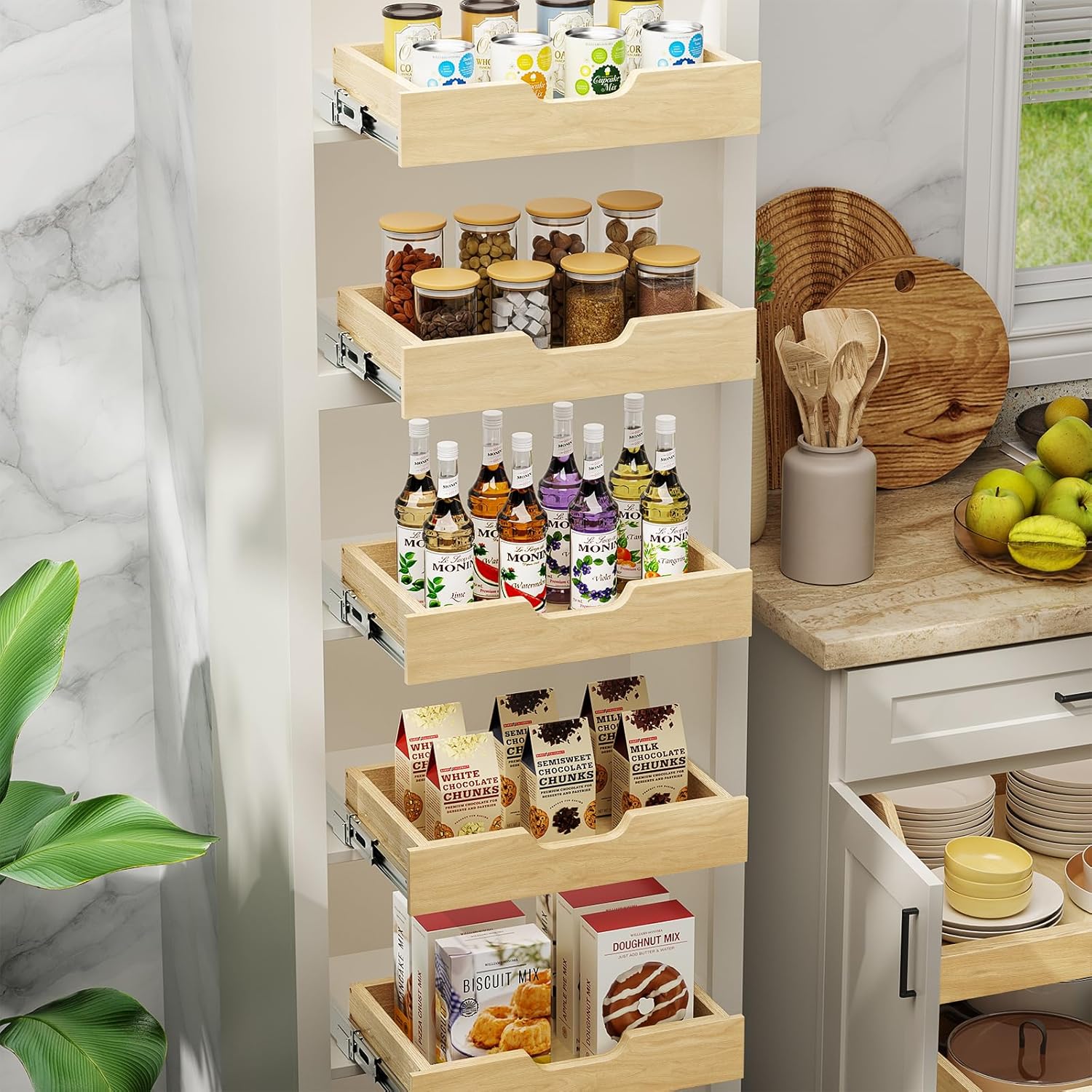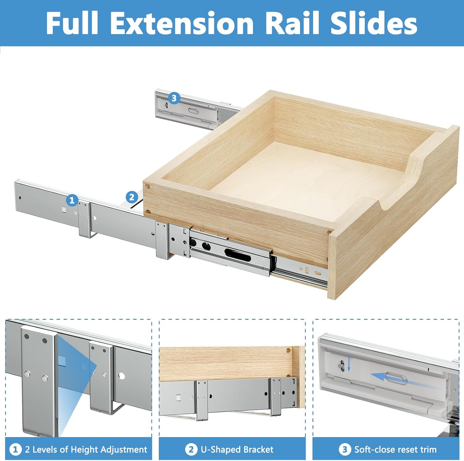 ROOMTEC Soft Close Wood Pull Out Cabinet Organizer with U-Bracket, Slide Out Cabinet Organizer with Full Extension Rail Slides Pull Out Drawer for Wall Cabinets and Pantry,19½” W x 10 ³/₁₀” D…