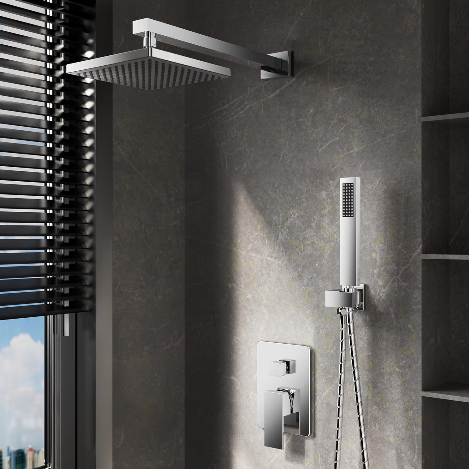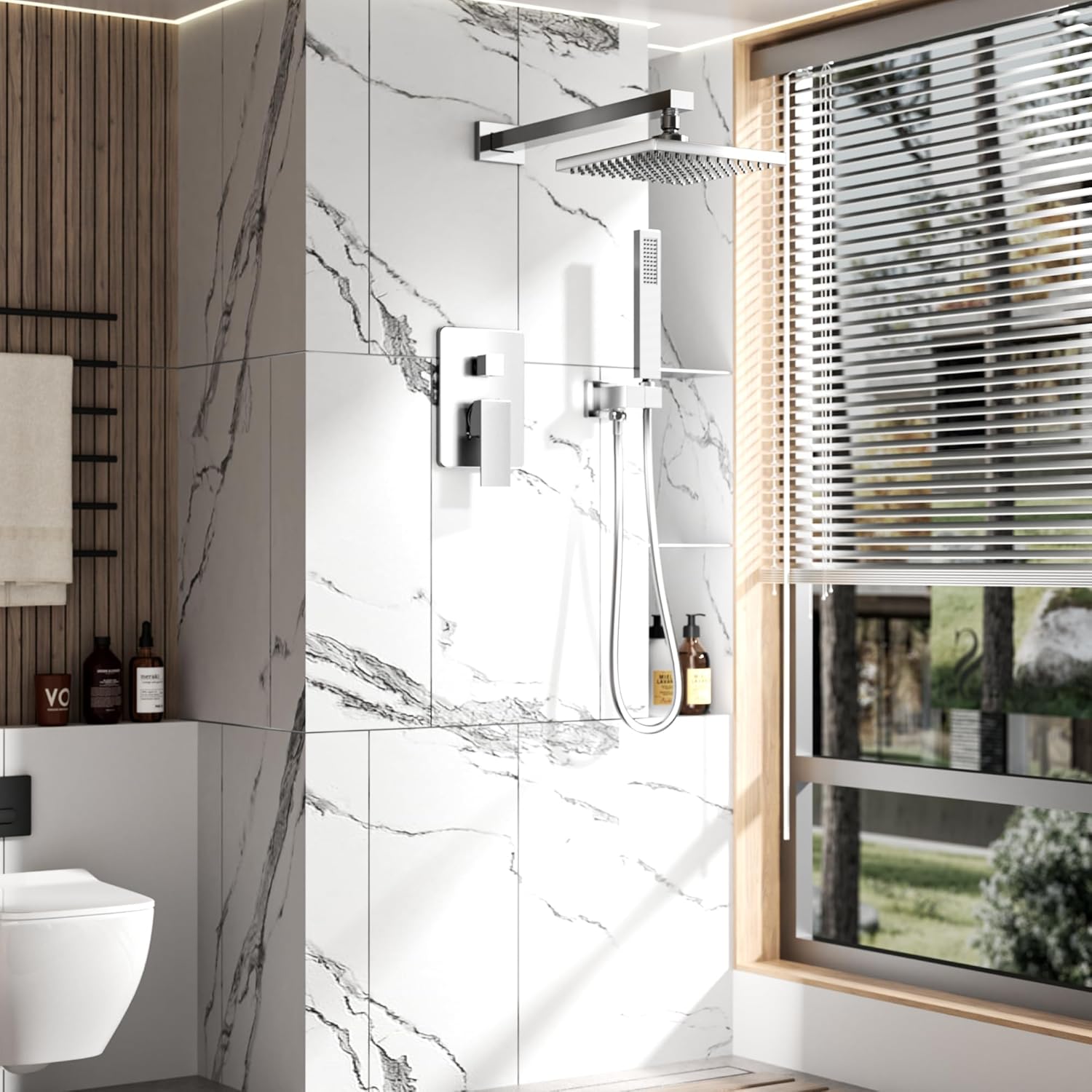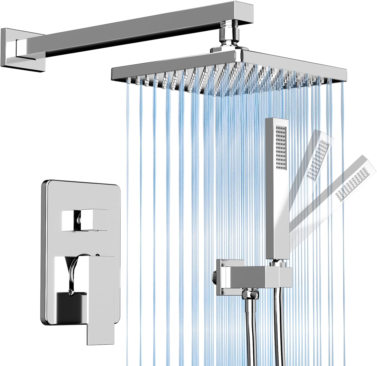 ROOMTEC Rainfall Shower System High Pressure 8 inch Shower Head Hand Held Shower Head Bathroom Luxury Rain Mixer Shower Complete Combo Set Wall Mounted, Chrome (Valve Included)