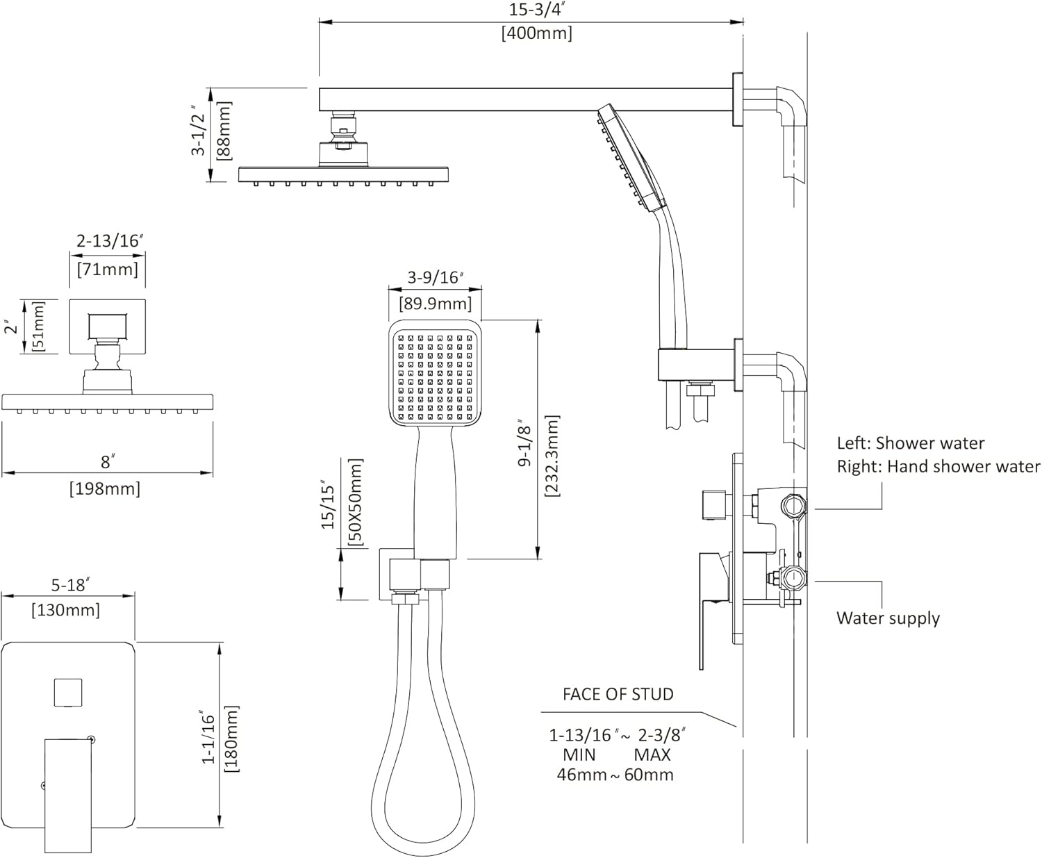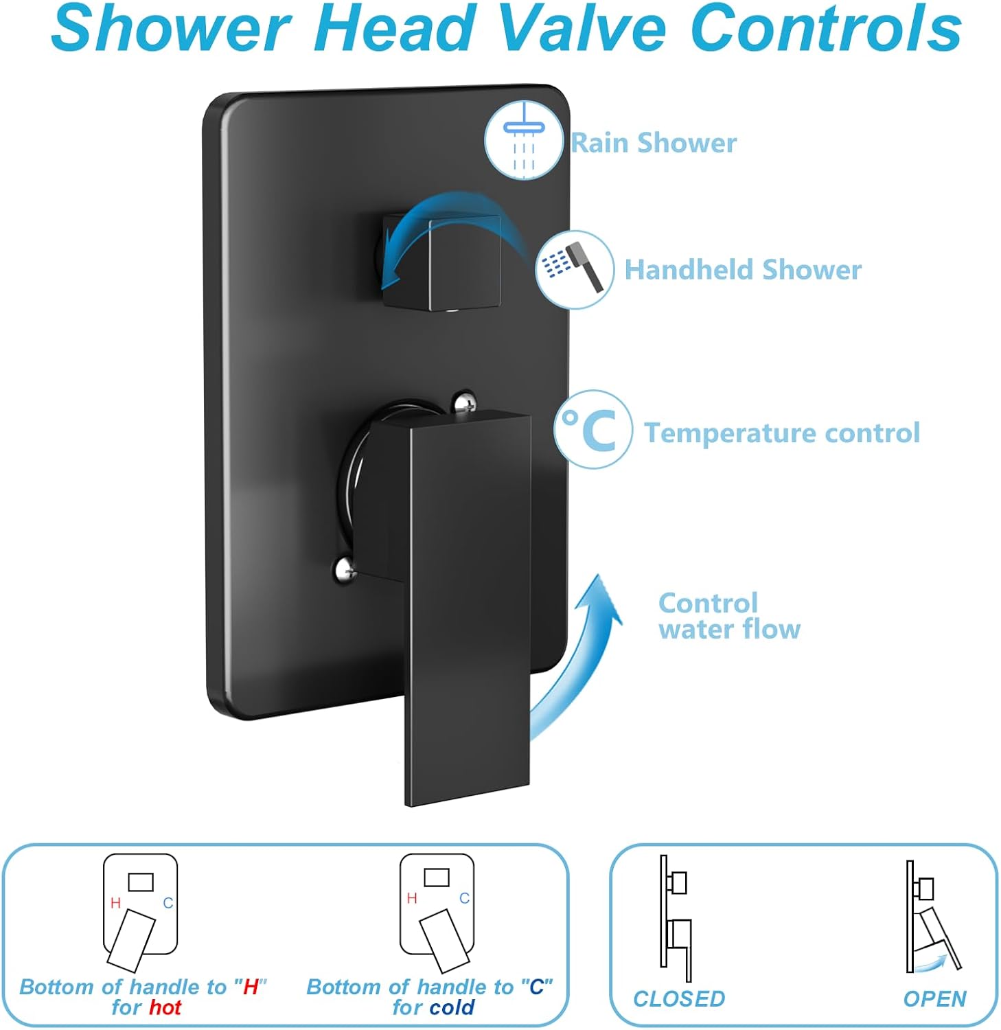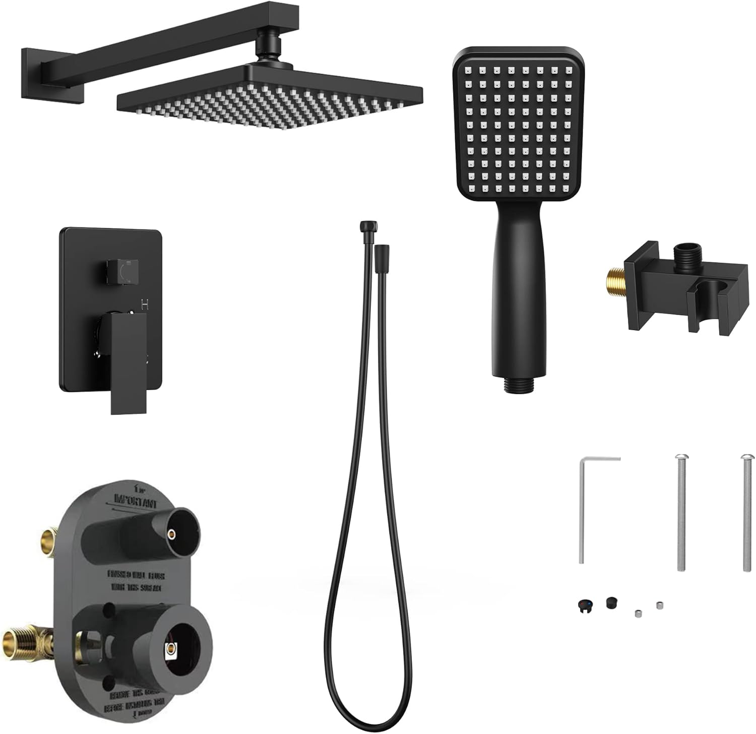 ROOMTEC Rainfall Shower System Matte Black with High Pressure 8 inch Shower Head Hand Held Shower Head Bathroom Luxury Rain Mixer Shower Complete Combo Set Wall Mounted (Valve Included)