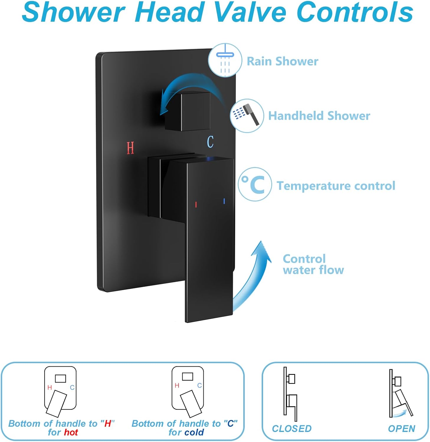 Rainfall Shower System Matte Black with High Pressure 8 inch Shower Head Hand Held Shower Head Bathroom Luxury Rain Mixer Shower Complete Combo Set Wall Mounted (Valve Included)