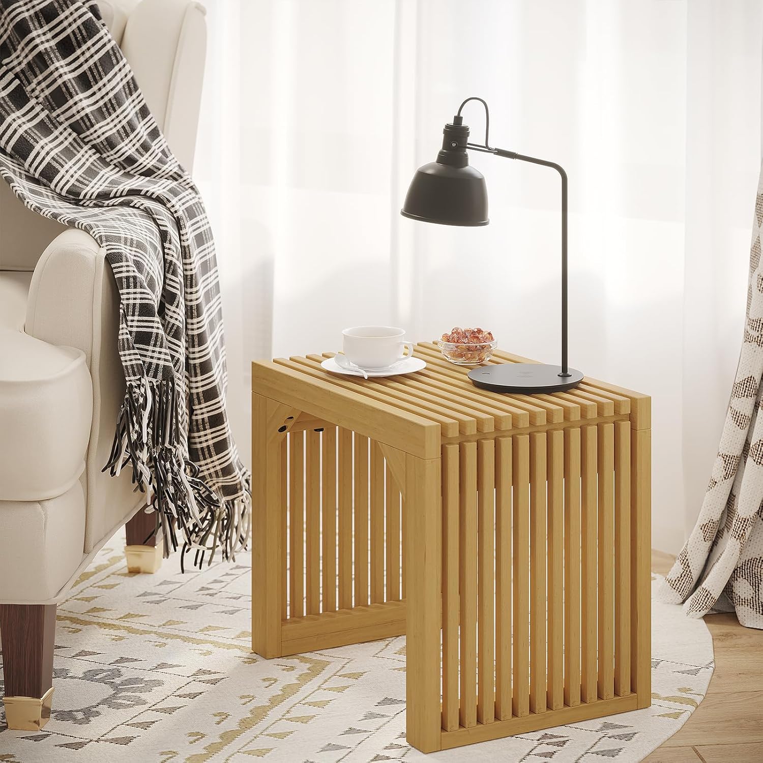 ROOMTEC 18" Dining Bench, Indoor Wood Bench for Entryway,Living Room,Kitchen and Bedroom (Nature, Small Bench)