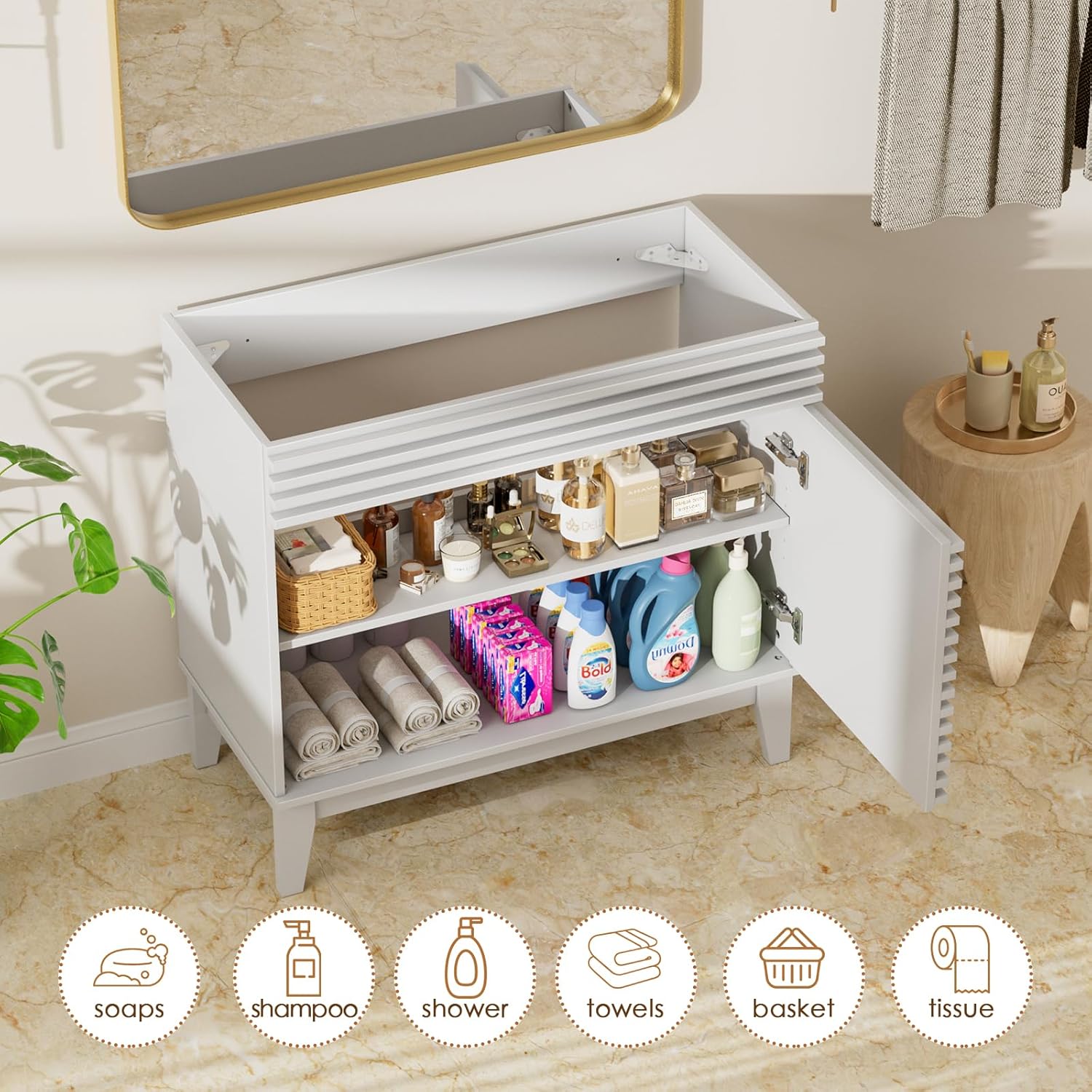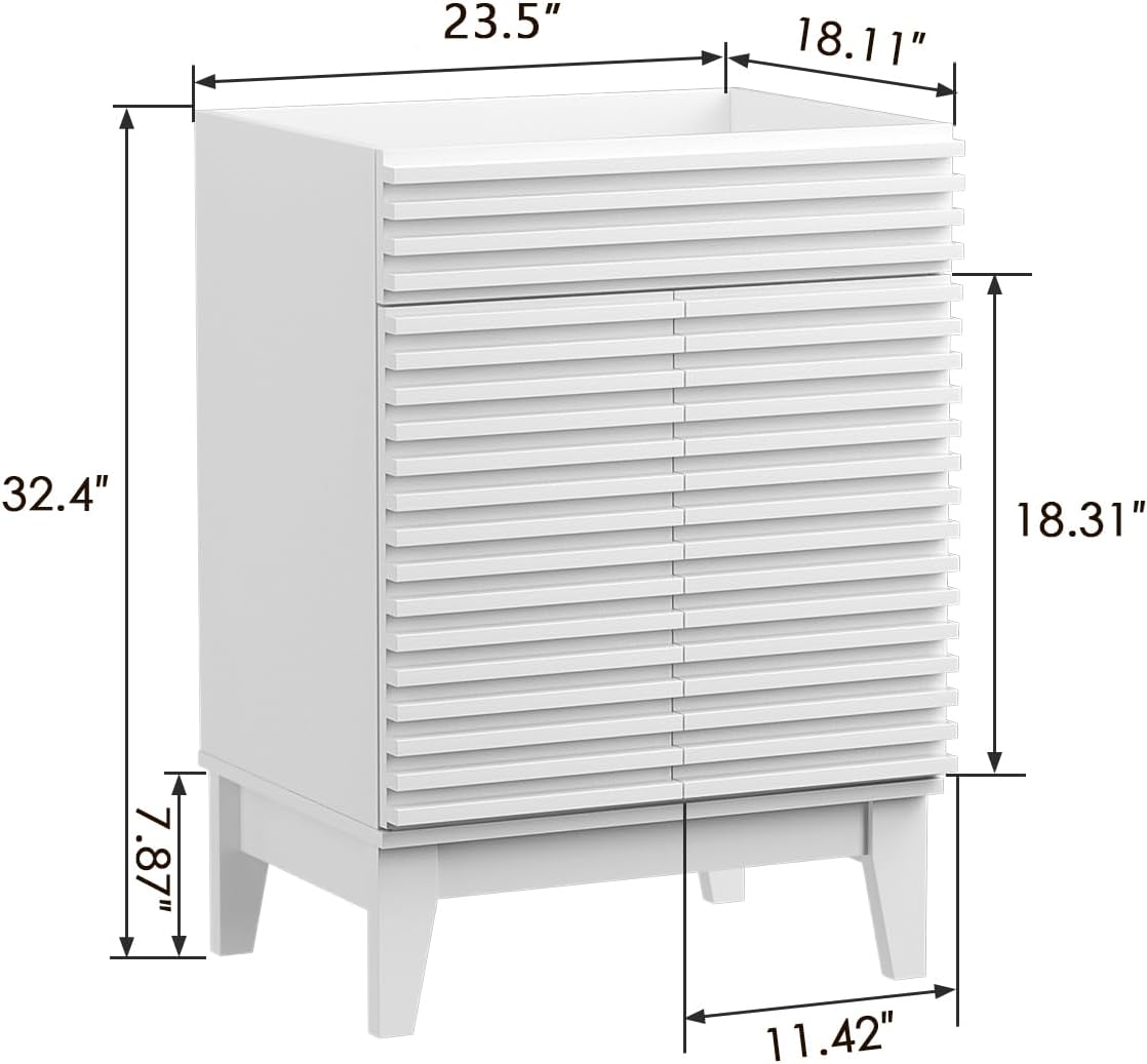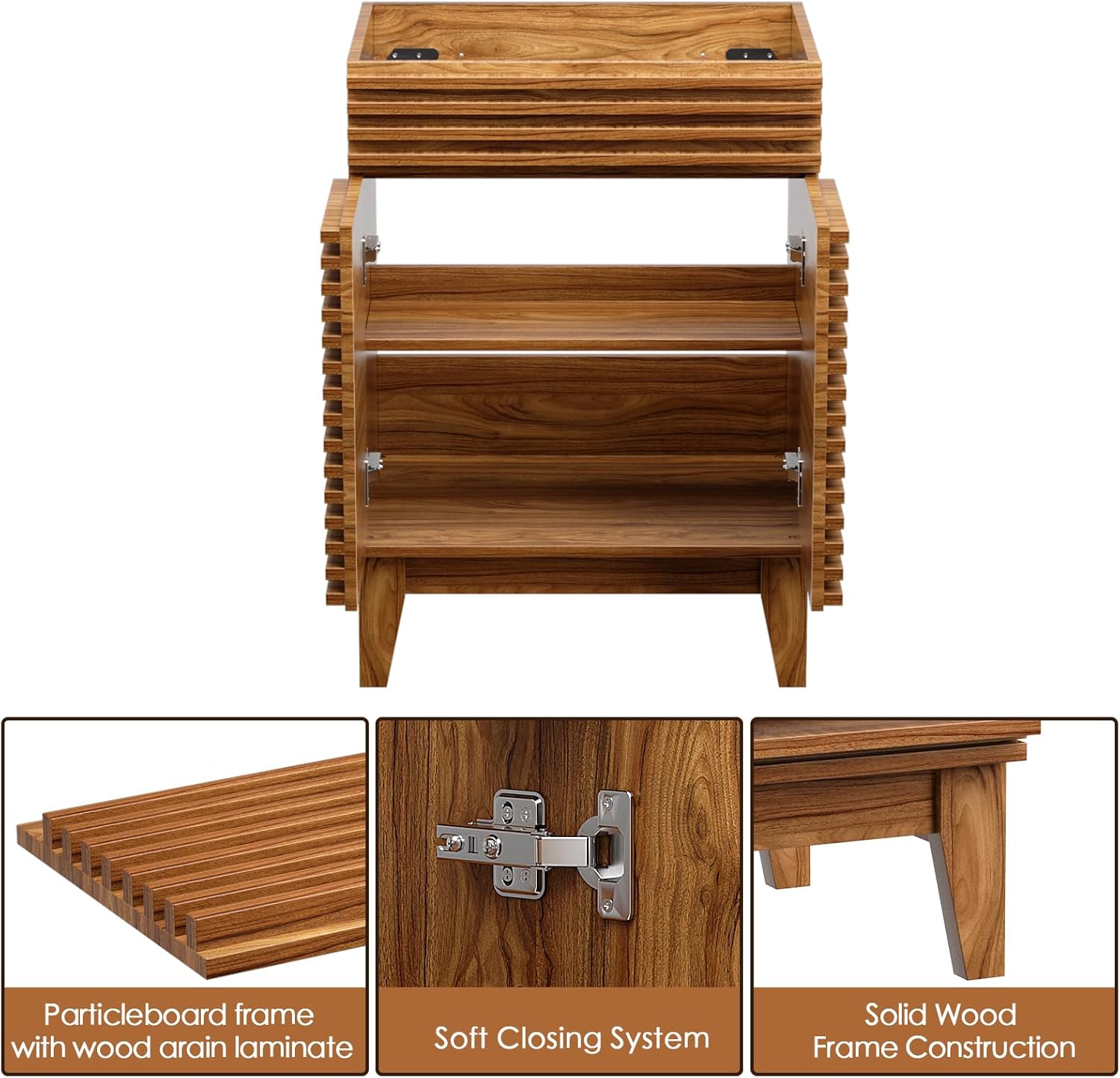 ROOMTEC 24" Bathroom Vanity, Mid-Century Freestanding Bathroom Cabinet Vanity with Storage, Particleboard Frame with Wood Grain Laminate, Walnut (Sink Basin Not Included)