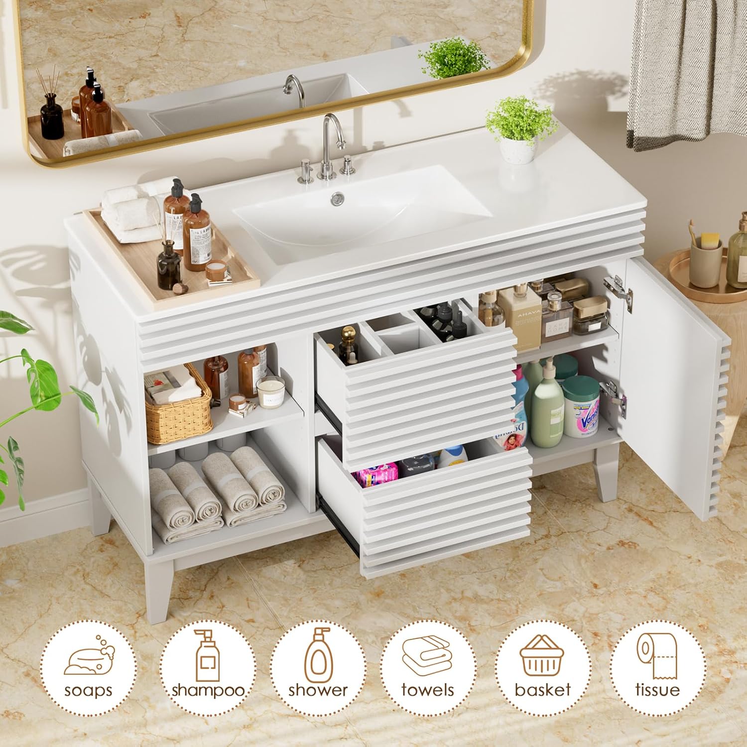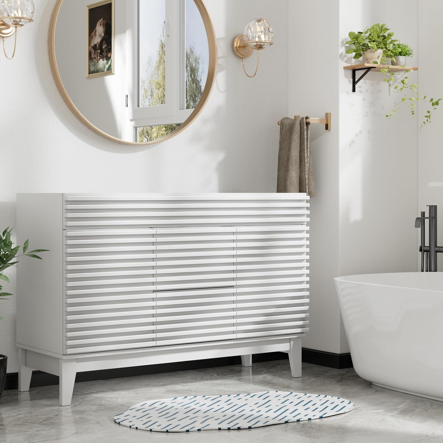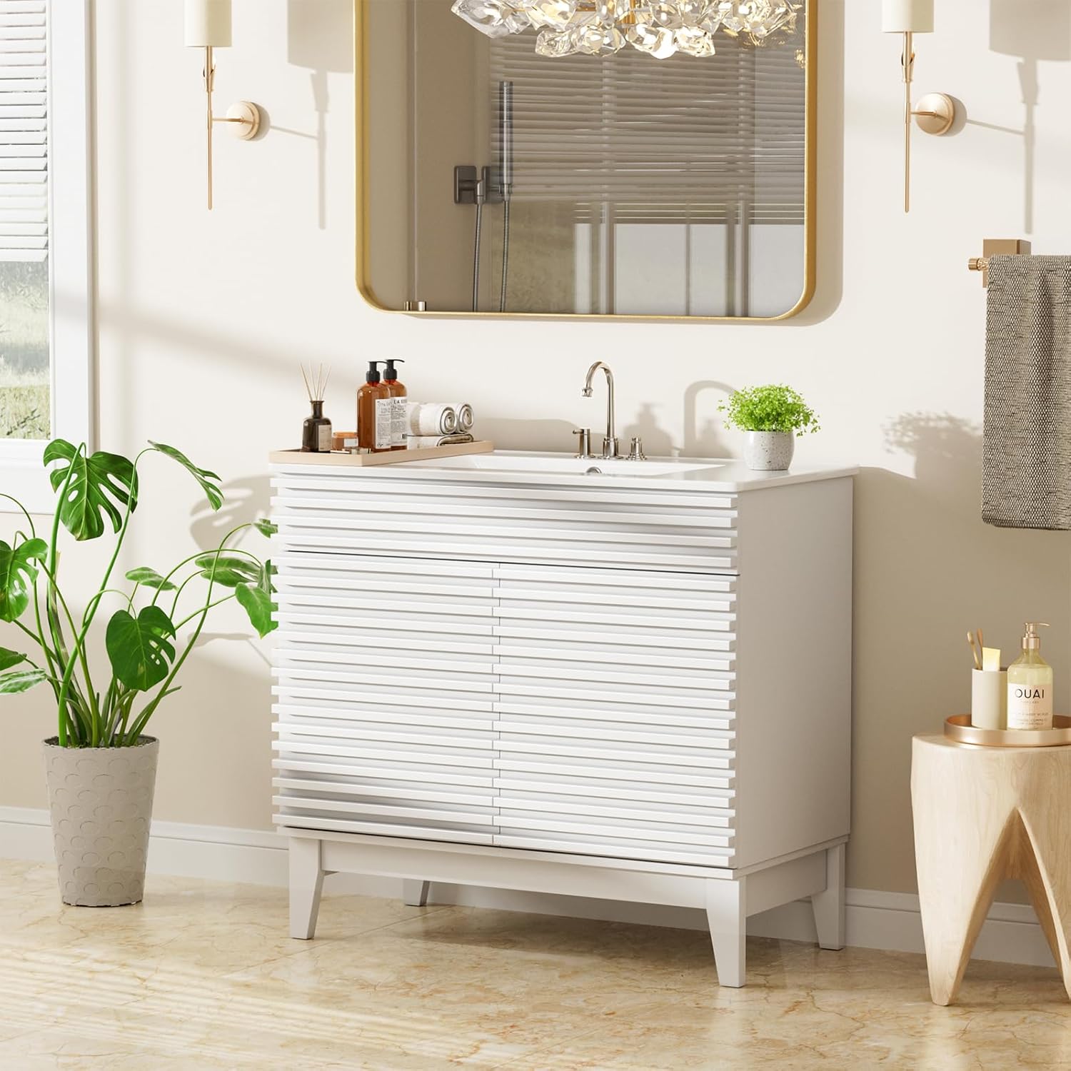 ROOMTEC 24" Bathroom Vanity, Mid-Century Freestanding Bathroom Cabinet Vanity with Storage, Particleboard Frame with Wood Grain Laminate, Walnut (Sink Basin Not Included)