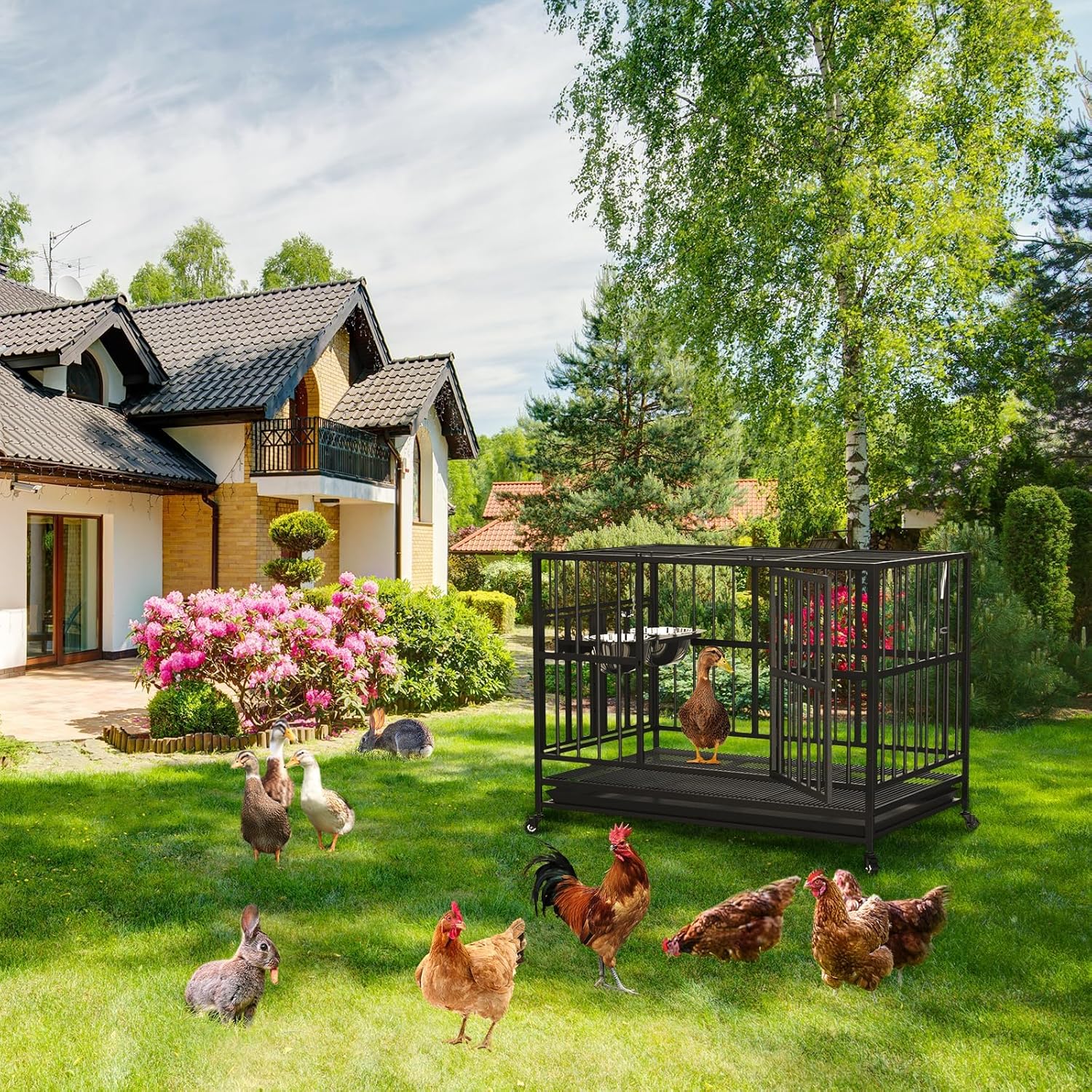 360-degree lockable rolling casters (4 lockable wheels) allow you to easily move the indestructible dog kennel around your home