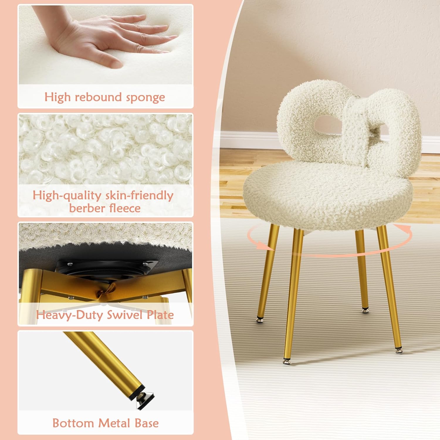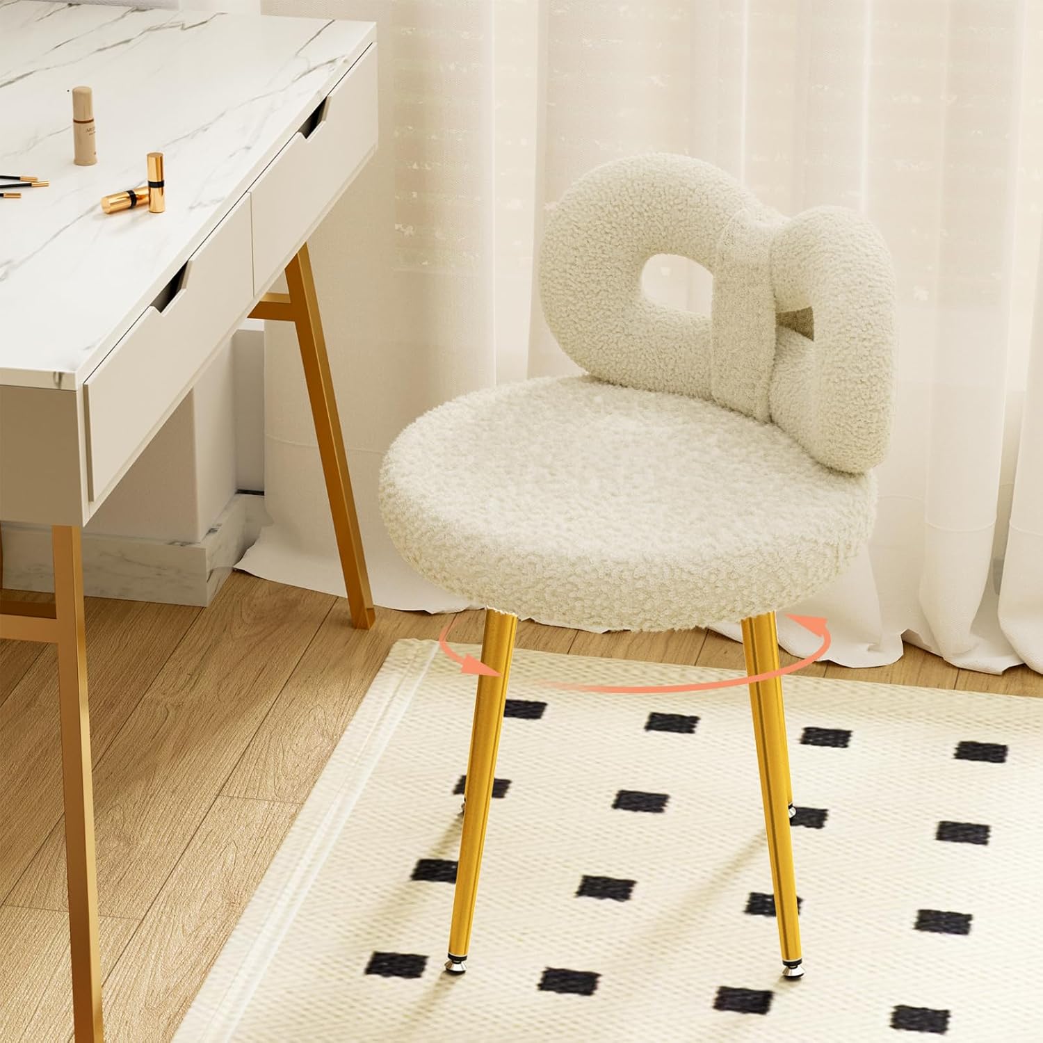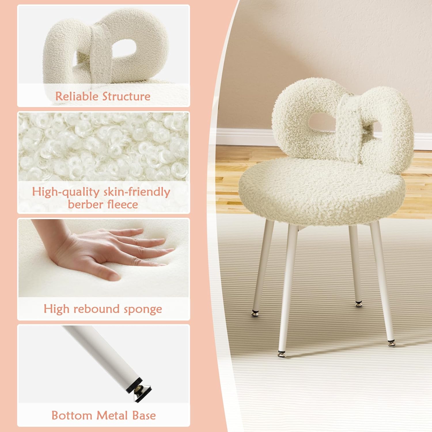 Pink and white bow lamb cashmere makeup vanity chair with back for Living Room