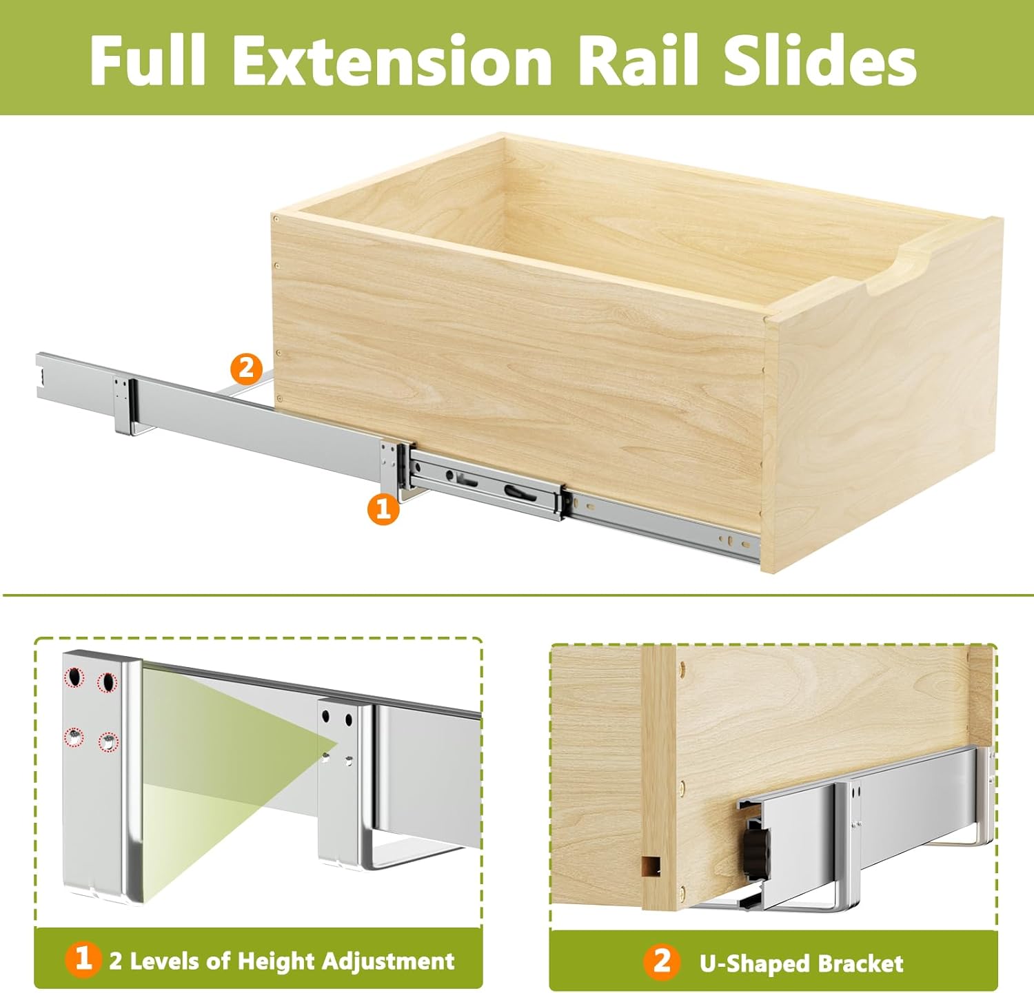 ROOMTEC Pull Out Cabinet Organizer with Full Extension Rail Slides, Wooden Pull Out Shelf for Kitchen Cabinet Pantry, 8" High Pull Out Drawer Storage Organizer with U Bracket, 10½"W×21" D, Hard Close