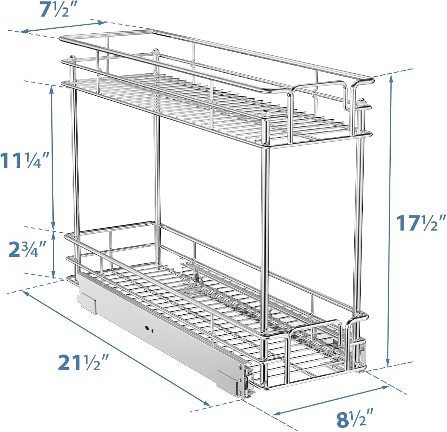 ROOMTEC Pull Out Spice Rack for Narrow Cabinet (5½" W X 21" D),2 Tier Slide Out Cabinet Organizer and Pull Out Shelves Under Cabinet Storage for Kitchen, Chrome