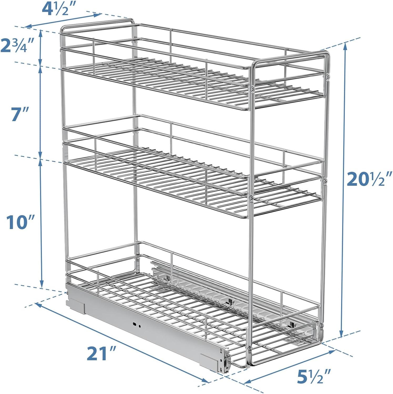 ROOMTEC Pull Out Spice Rack for Narrow Cabinet (5½" W X 21" D),3 Tier Slide Out Cabinet Organizer and Pull Out Shelves Under Cabinet Storage for Kitchen, Chrome