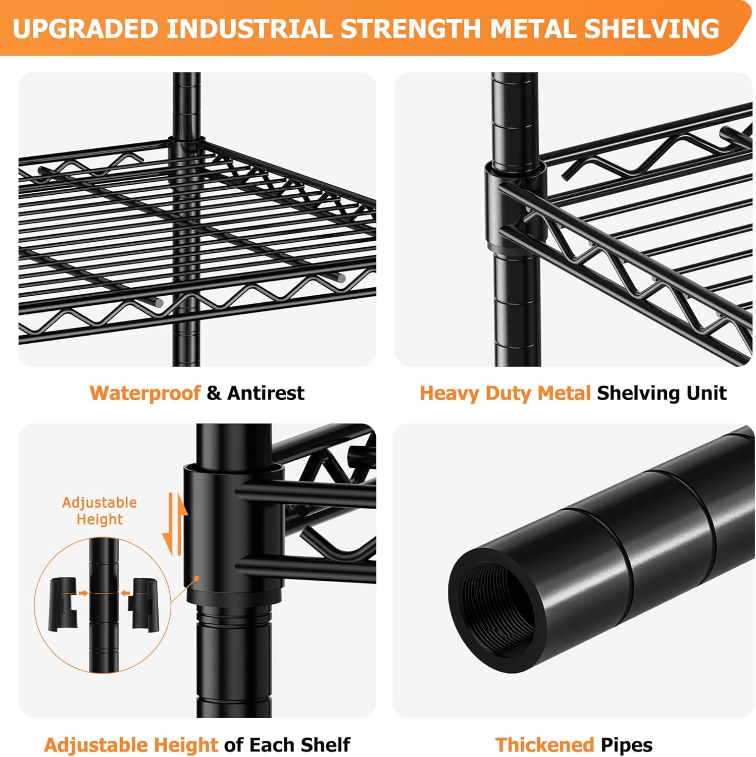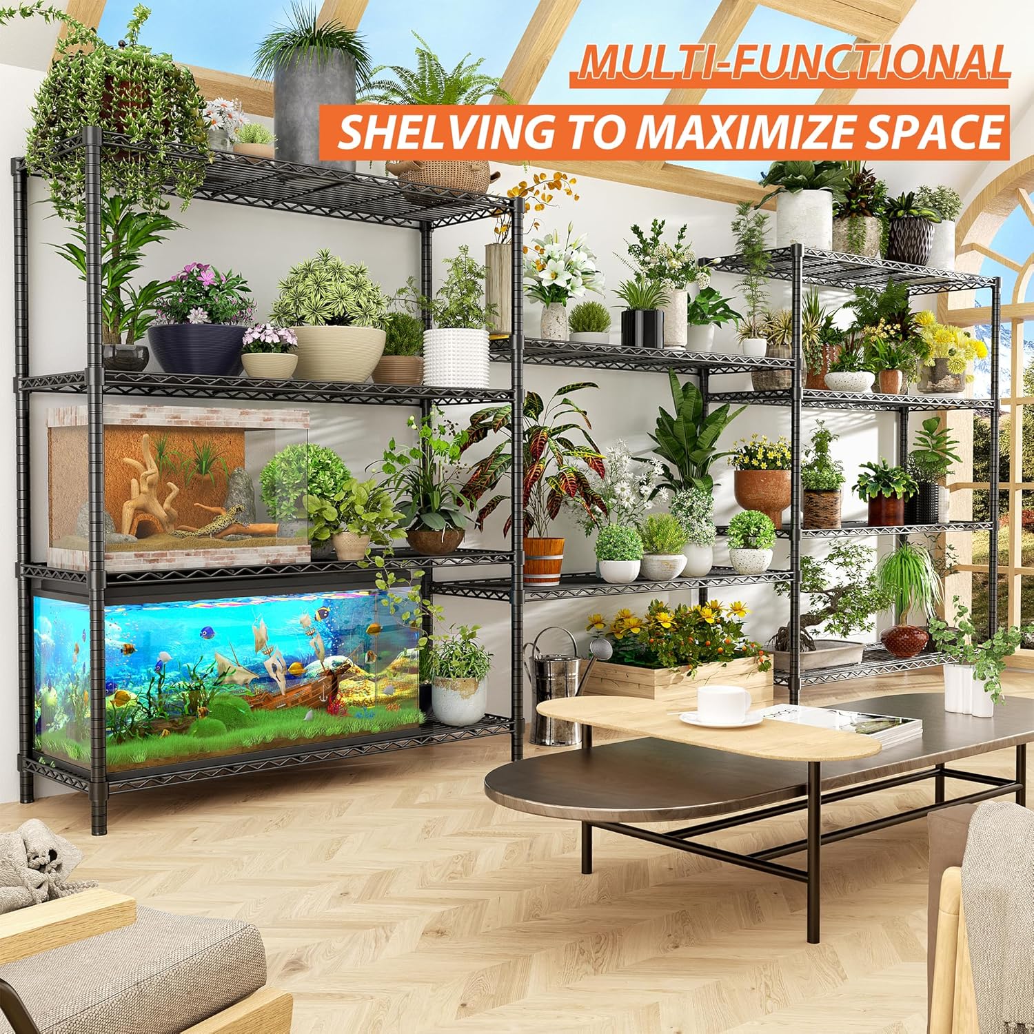 Roomtec Storage Shelves Heavy Duty, 48" L x 20" W x 72" H Garage Wire Shelving Unit Loads 2000LBS, 5-tier Adjustable Metal Industrial Utility Shelf Rack for Kitchen, Laundry Room, Pantry, Warehouse, Basement