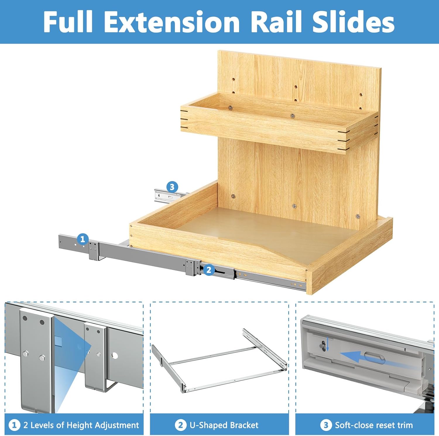 ROOMTEC Under Sink Organizers and Storage 22½” W x 21” D, 2 Tier Pull Out Cabinet Organizer with Soft Close, Adjustable Pull Out Cabinet organizer with U Bracket for Bathroom Kitchen(Right)