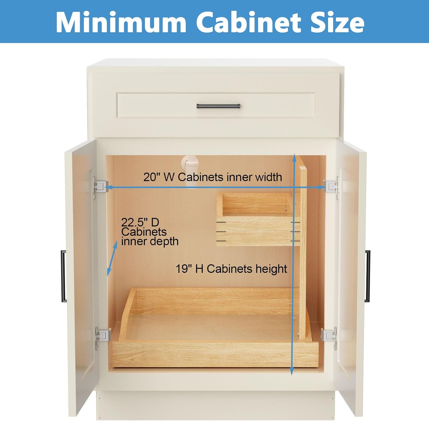 ROOMTEC Under Sink Organizers and Storage 22½” W x 21” D, 2 Tier Pull Out Cabinet Organizer with U Bracket, Adjustable Pull Out Cabinet organizer for Bathroom Kitchen(Right)