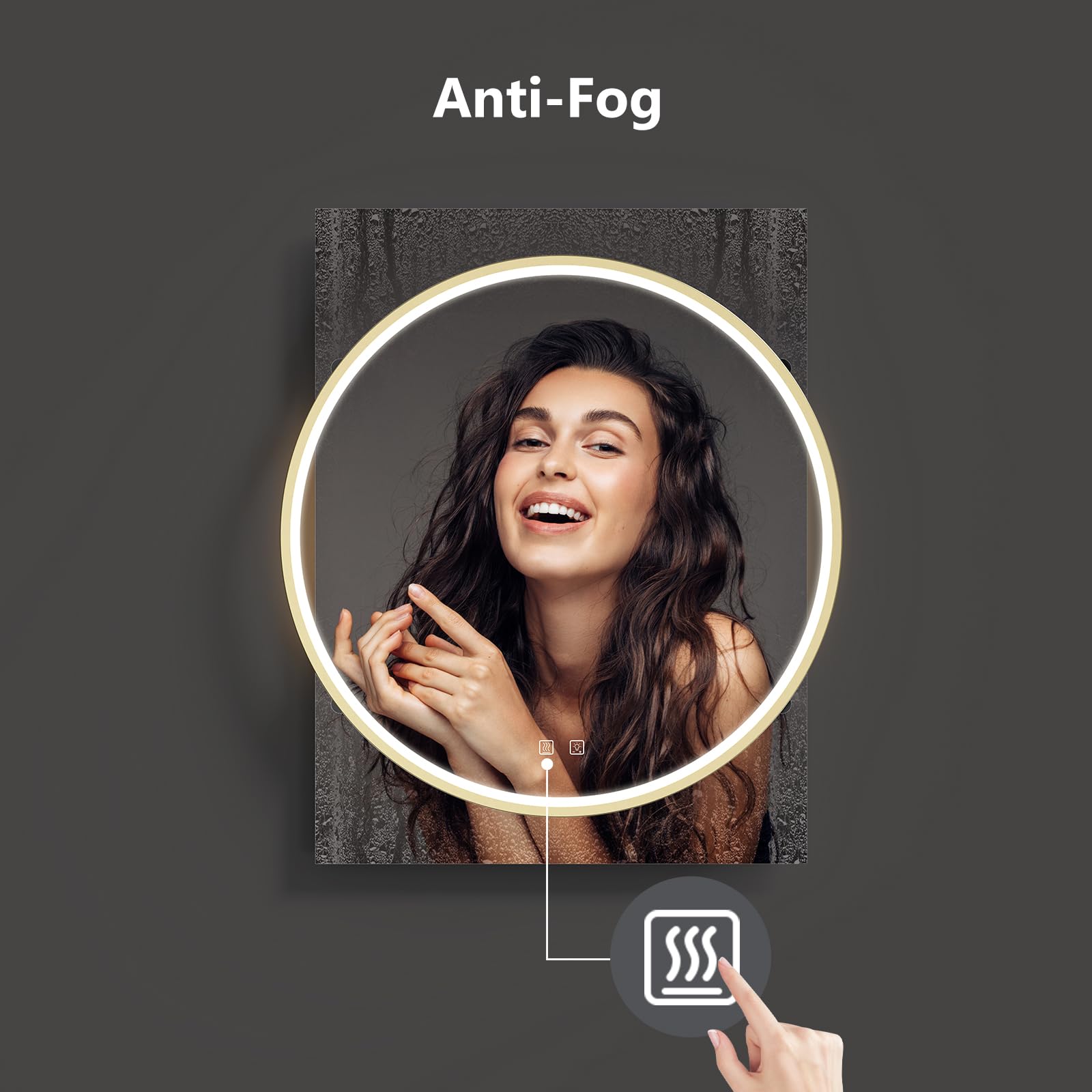 - 【Specific Anti-Fog Function For Bathroom】Modern touch switch on the mirror can separately control the anti-fog function. It needs few minutes to clean the fog on the LED bathroom mirror completely. Please turn on the anti-fog switch in advance before you use it.